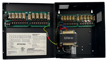 • Output: 24VAC at 8Amp. 16 individual output fused at 1Amp with glass fuses.