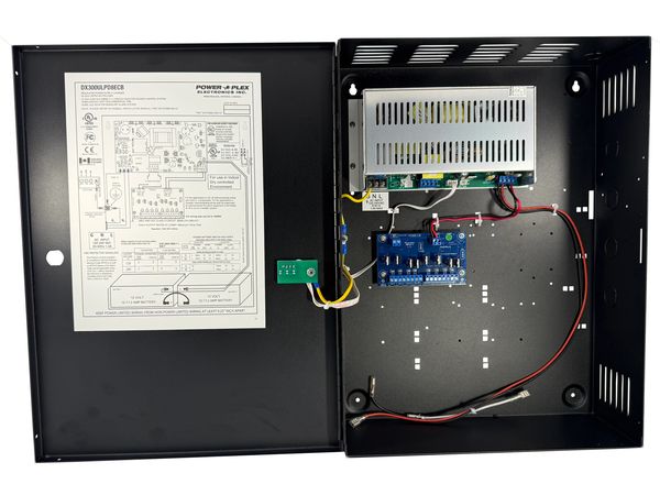 Output: Switch-selectable 12VDC or 24VDC at 3Amp. Optional tamper switches.